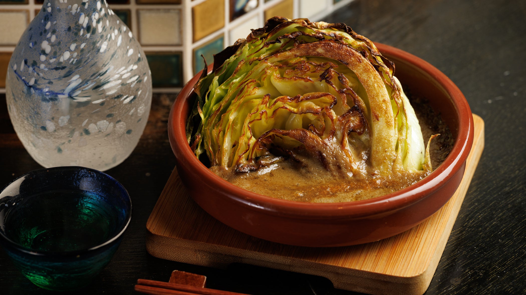 西京味噌に漬け込んだサーモンに、極細の麺状の生地「カダイフ」を巻き付けて焼き上げた一品です。サクサクとした食感と、磯の風味を活かした生のり入りクリームソースの組み合わせをお楽しみいただけます。