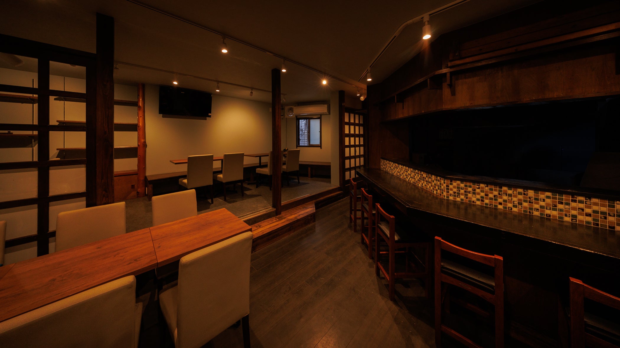 出店場所は「国影」が所在する建物の2階です。「ゆっくりと料理や会話を楽しみたい」というお客様のニーズに応えるため、賑やかな1階とは導線を分けた「隠れ家」をコンセプトに設計。店内には、調理のライブ感が伝わるカウンター席と、グループ利用が可能なテーブル席を設けています。