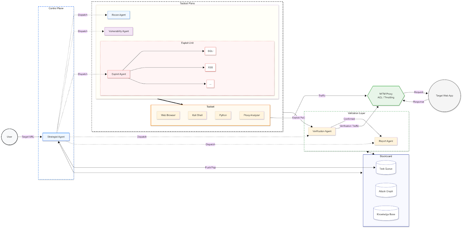 技術面では、複数の専門AIが連携するマルチエージェント構成と、エージェント間の状態共有を担うVector Memoryにより、自律的な検証ワークフローを実現しています。推論過程や攻撃経路を可視化する独自のグラフUIで説明可能性と介入性を確保し、ヒューマンリーダブルなレポートや証跡バンドルなど実務で扱いやすい成果物を出力します。PortSwigger Web Security Academyを用いたベンチマークでは全体の84.1%を達成し、Authentication、Race Conditions、Business Logicなど従来は高度な専門人材しか対応できなかった領域の自動化を可能にします。