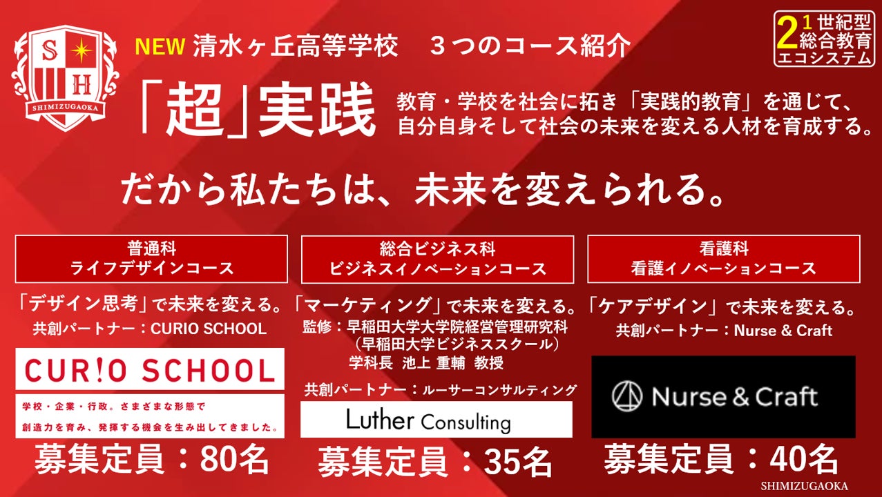 清水ヶ丘高等学校は、教育・学校を社会に拓き「実践的教育」を通じて、自分自身そして社会の未来を変える人材を育成するため2027年4月に新たに3つのコースを新設します。