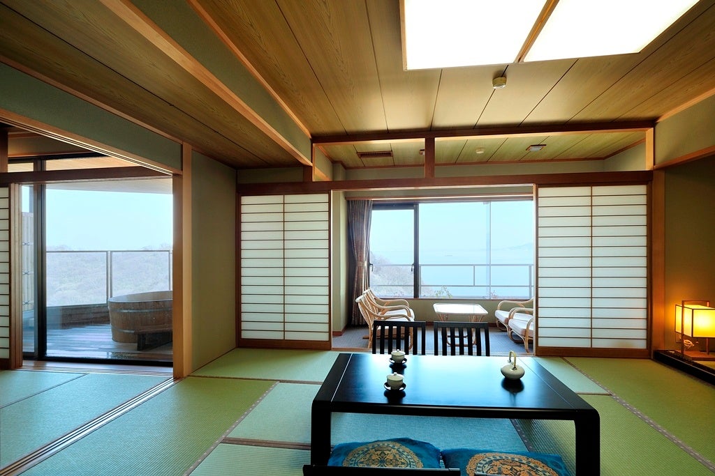 ・特長:全室オーシャンビュー、三河湾360度の絶景、海と桜の同時体験
