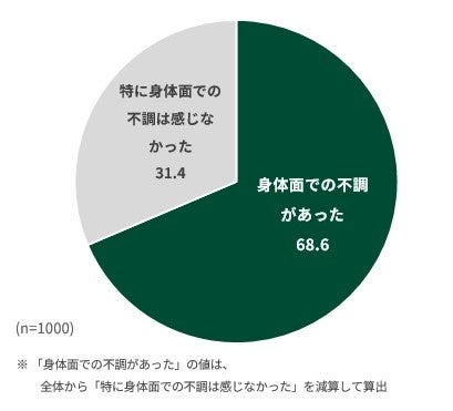 環境変化後に、身体面でも不調を感じた人は68.6%にのぼりました。