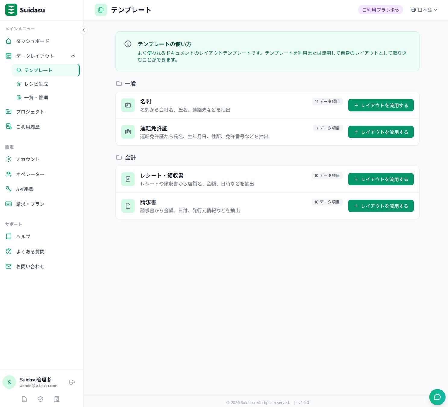 SuidasuはAIを活用し、画像やPDFから必要なデータを自動抽出するクラウドサービスです。