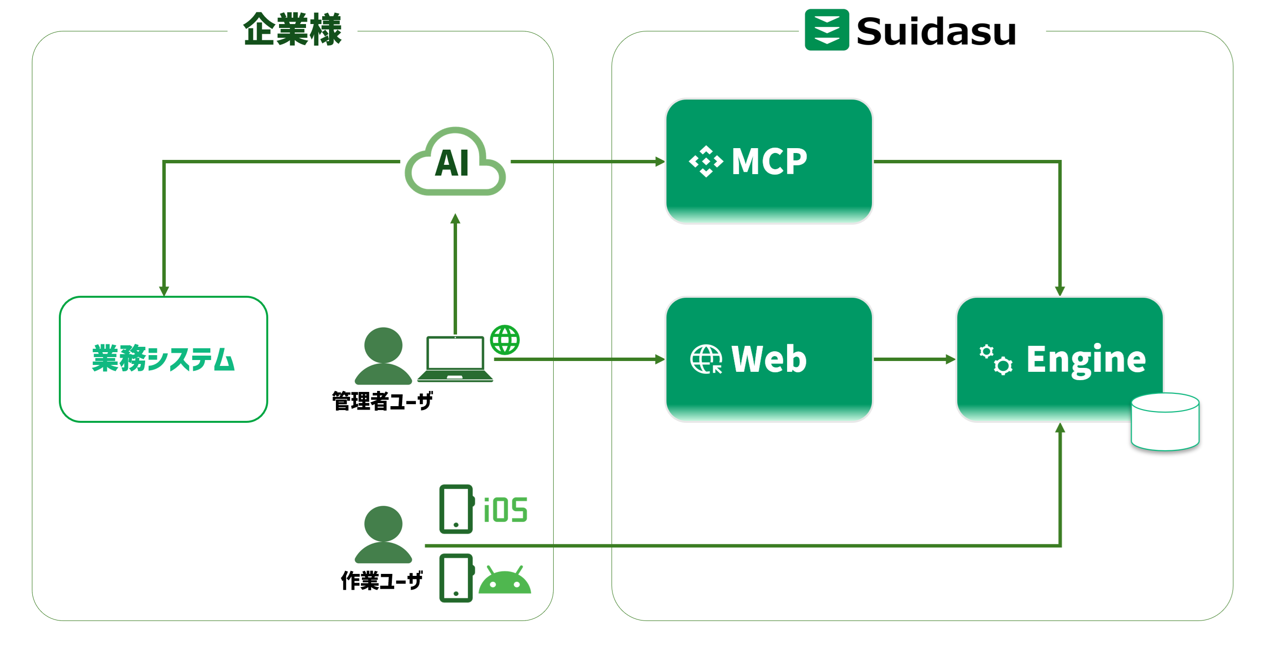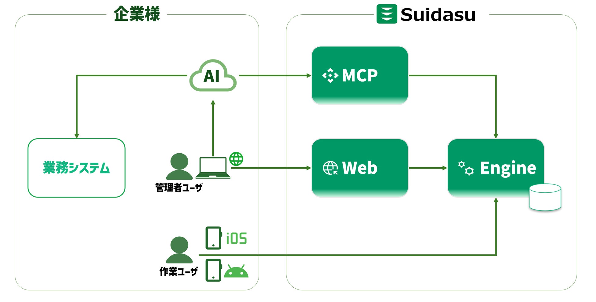 Claude等のAIエージェントからSuidasuの全機能を直接利用することができます。