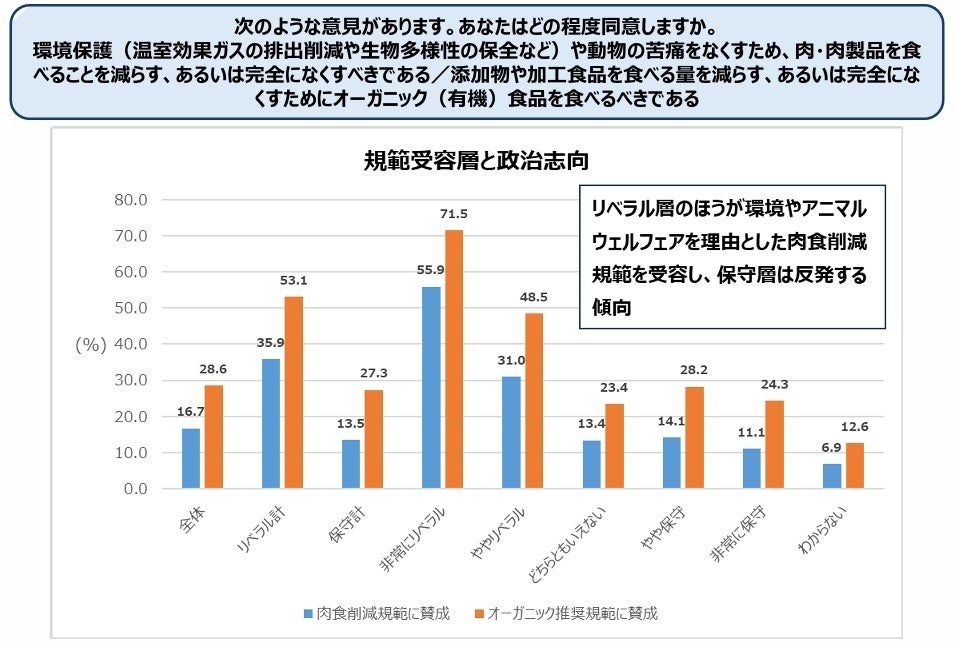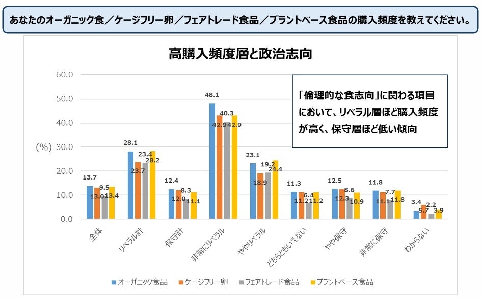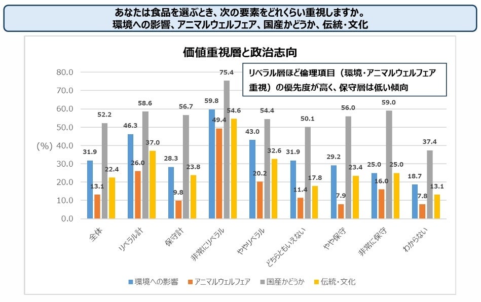 今回の調査では、倫理的な食ほど政治志向が表れる傾向が確認されました。
