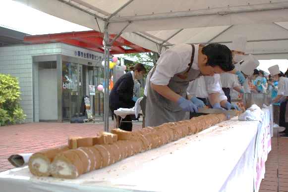 オープニングセレモニーで9mのロールケーキをカット!