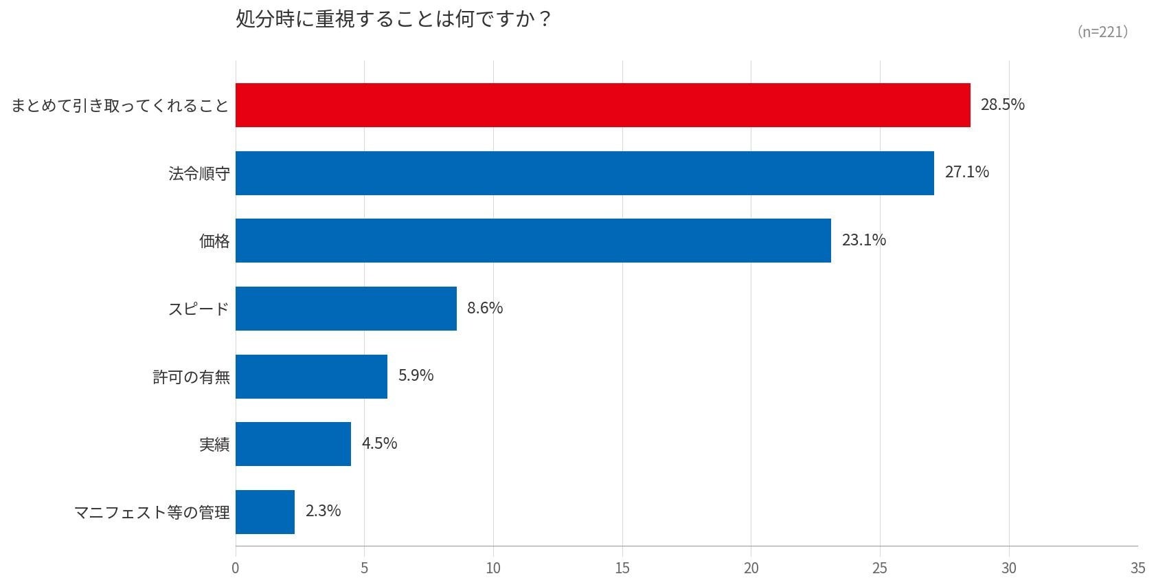 ■ 重視するのは「まとめて引き取り」と「法令順守」 価格よりも安心・利便性を優先