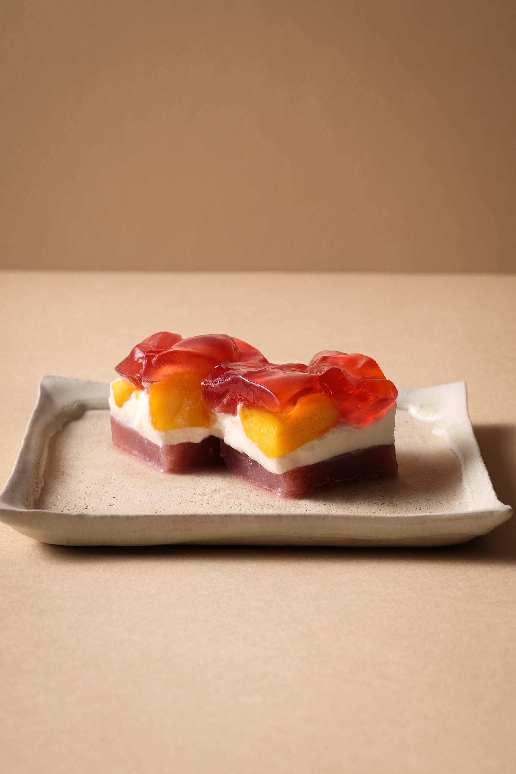 ■ 0.1mm単位で調整した「口どけ」の設計 19歳から洋菓子の世界でクリームや生地の質感を追求してきた店主が、和の伝統素材を扱う中で最もこだわったのが「口どけの余韻」です。寒天の硬さ、糖度のバランス、素材を重ねる順番。パティシエならではの緻密な計算により、最後の一口まで驚きが続く構成に仕上げました。