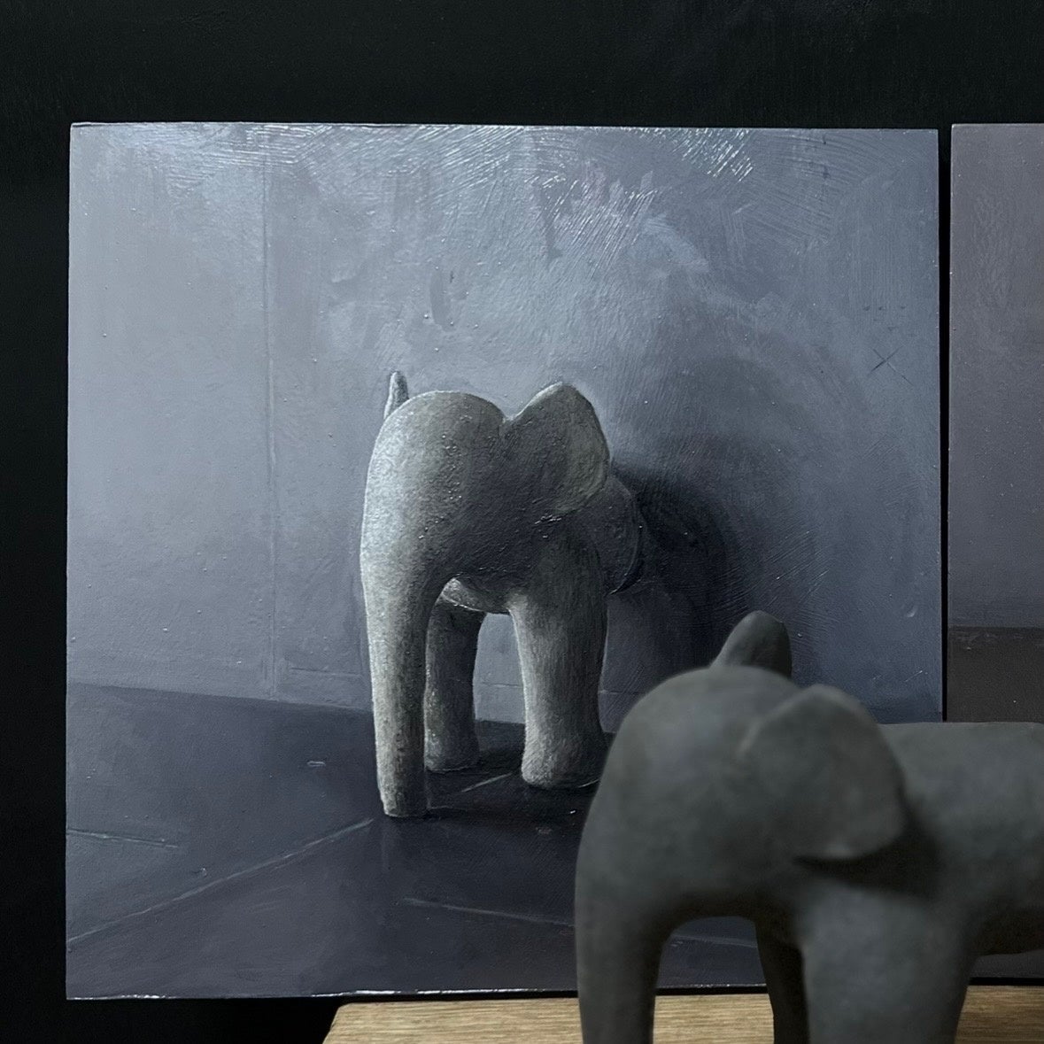本展では厚川文子氏・島田篤氏が土から生み出した「陶作品」を、石田淳一氏・伊豫田晃一氏のまなざしが「絵画」として掬い上げます。暮らしの中で呼吸する器やオブジェが、画家の筆致によってキャンバスへと写し取られ、最後に額装家の手仕事がその記憶をそっと縁取る。それは、一つの表現が姿を変えながら、誰かの宝物へと生まれ変わっていく「再生の呼吸」を辿るリレーでもあります。
