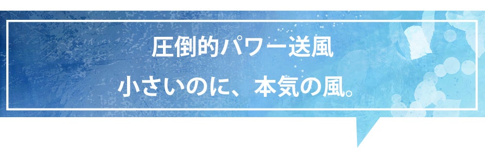 ① 手のひらサイズで最大13m/sのパワフル風、猛暑の屋外でも瞬時にクール!