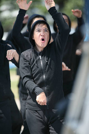 あの懐かしいカマキリのモノマネ、すっかり有名になった千葉真一さんのモノマネ。関根さんが次々繰り広げるモノマネ体操に倣って、同じ黒のスウエットの上下を着た大勢の男女が続きます。これは、いつまでたっても若々しい関根さんに、その秘訣を教わろうと集まった集団。