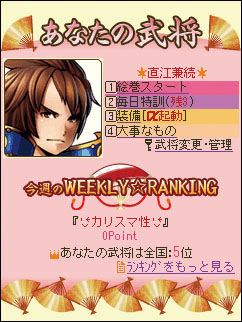 アクセス方法:iMenu⇒[メニューリスト]⇒[ゲーム]⇒「ロールプレイング」⇒[はじめて戦国王子]