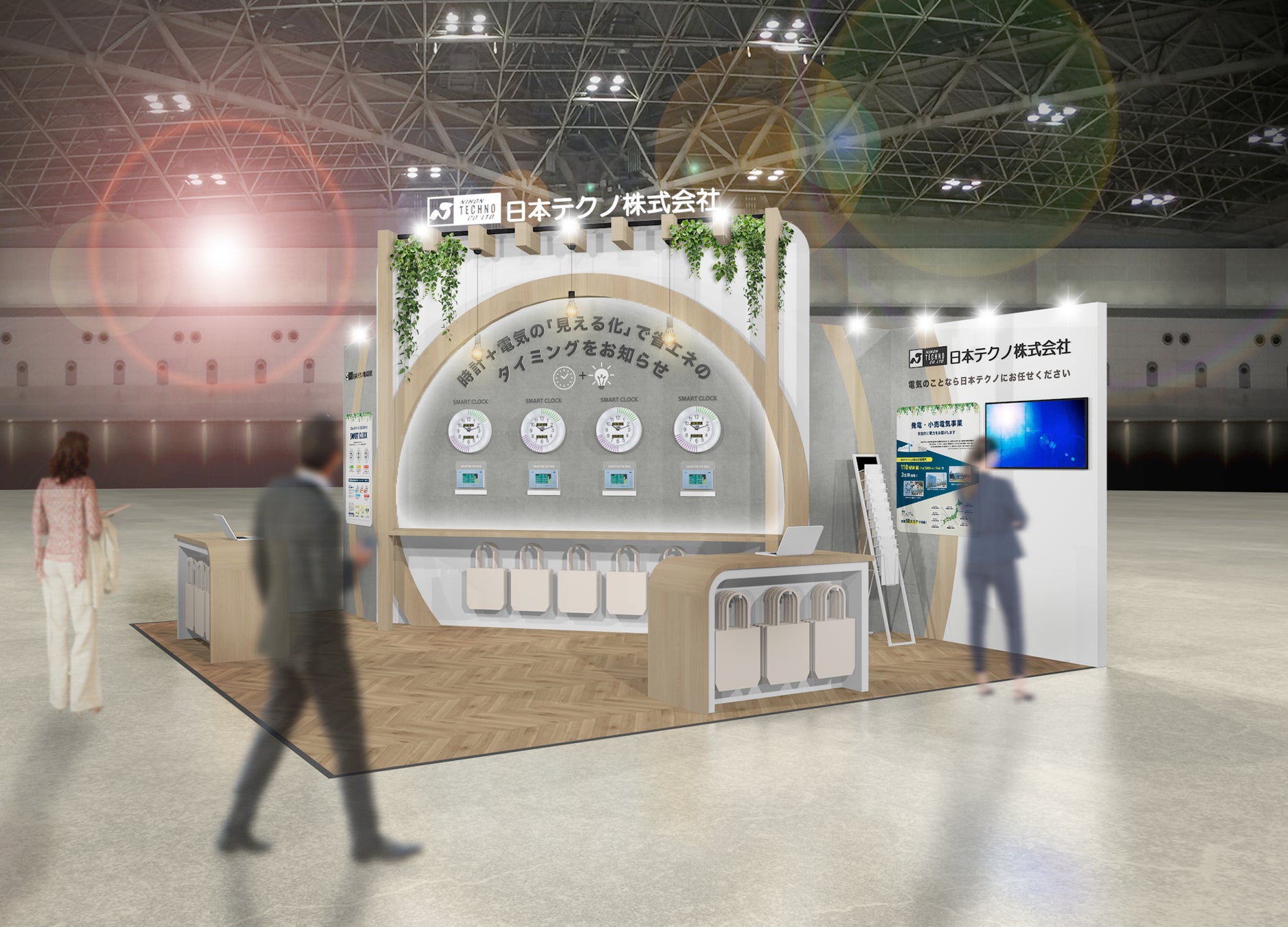 日本テクノのブースでは電気の「見える化」「理解(わか)る化」を通じた省エネ方法をご紹介します。電気の使用状況を光と音でお知らせする時計「SMART CLOCK」(スマートクロック)と、使用量が数字とモニターに映る表情でわかるモニター「SMARTMETER ERIA」(スマートメーター エリア)を展示。ビジネスシーンで実現する無理のない、上手な電気の使い方をご提案します。本サービスは中部エリアでも多くの企業さまに導入いただいています。