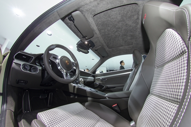 技術面・性能面で 911 シリーズの最高峰にあたる 911 ターボとターボ S の新世代モデルも展示されており、これらのピラーとヘッドライナーにアルカンターラが使われています。洗練さを持ちながらまさにスポーティなインテリアを作る最良のソリューションです。