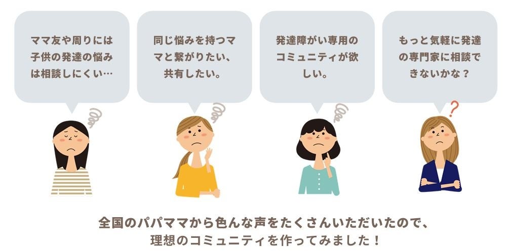 スタートは、利用者同士のQ&Aサービスとして開始いたしますが、今後は育児相談のアンサー役として、保育士や作業療法士や言語聴覚士など児童発達支援の専門家への相談サービスも展開していく予定です。