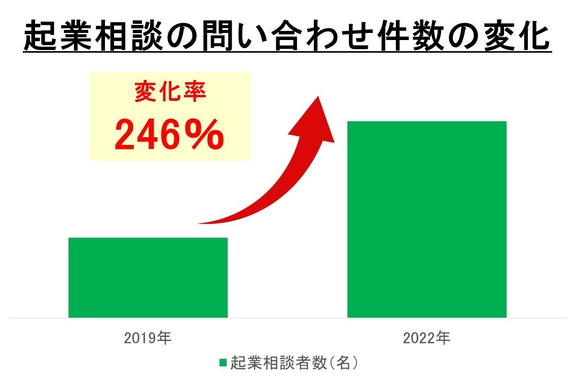 起業の学校「WILLFU 社会人講座」「WILLFU STARTUP ACADEMY」を展開する株式会社ウィルフでは、起業相談の問い合わせ件数が、2022年、2019年対比で246%増加したことをご報告致します。