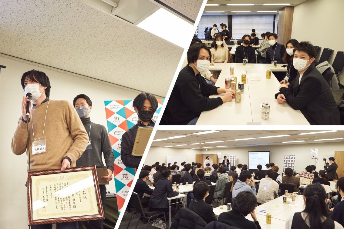 2022年に開催した「起業の学校WILLFU」OBOG会は、社会人講座と大学生講座の卒業生合わせ、100名弱の方にお越しいただきました。起業家として活躍されている卒業生の表彰や、起業家同士の交流の場となり、お互いに刺激し合える場となりました。