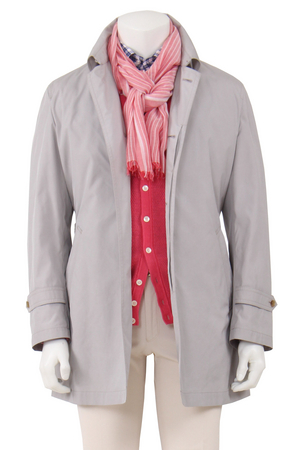 生地に付着した花粉などのアレル物質の働きを抑制することができる素材を使用したスプリングコート。