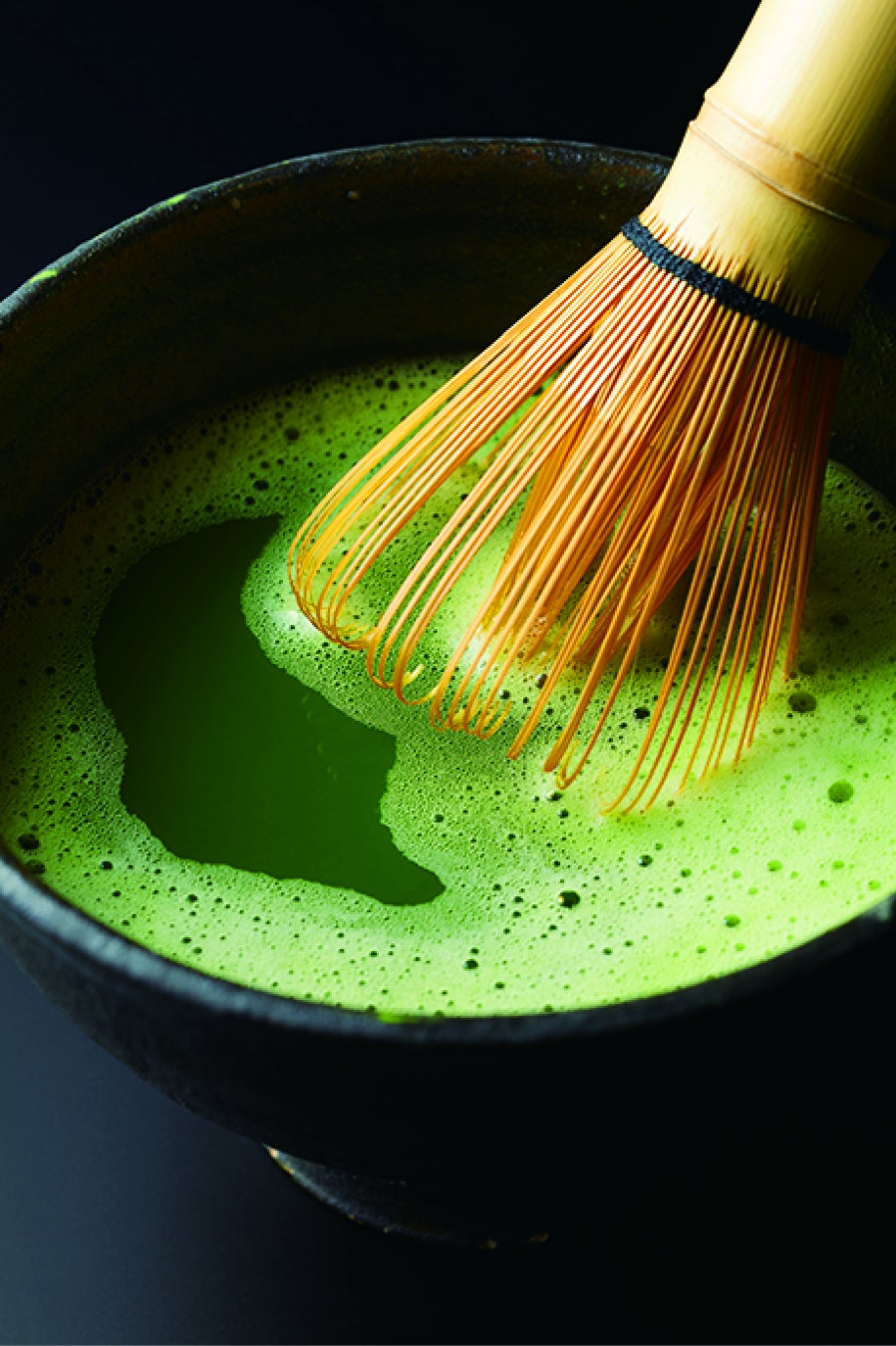 抹茶のもつ鮮やかな緑色を得るために、土づくりからこだわり、色合いの良い希少品種を中心に一番摘み茶葉を厳選。それを低温でゆっくりと熟成させたのちに石臼で丁寧に挽き、抹茶らしいほろ苦さと調和のとれた深みのある味わいに仕上げています。