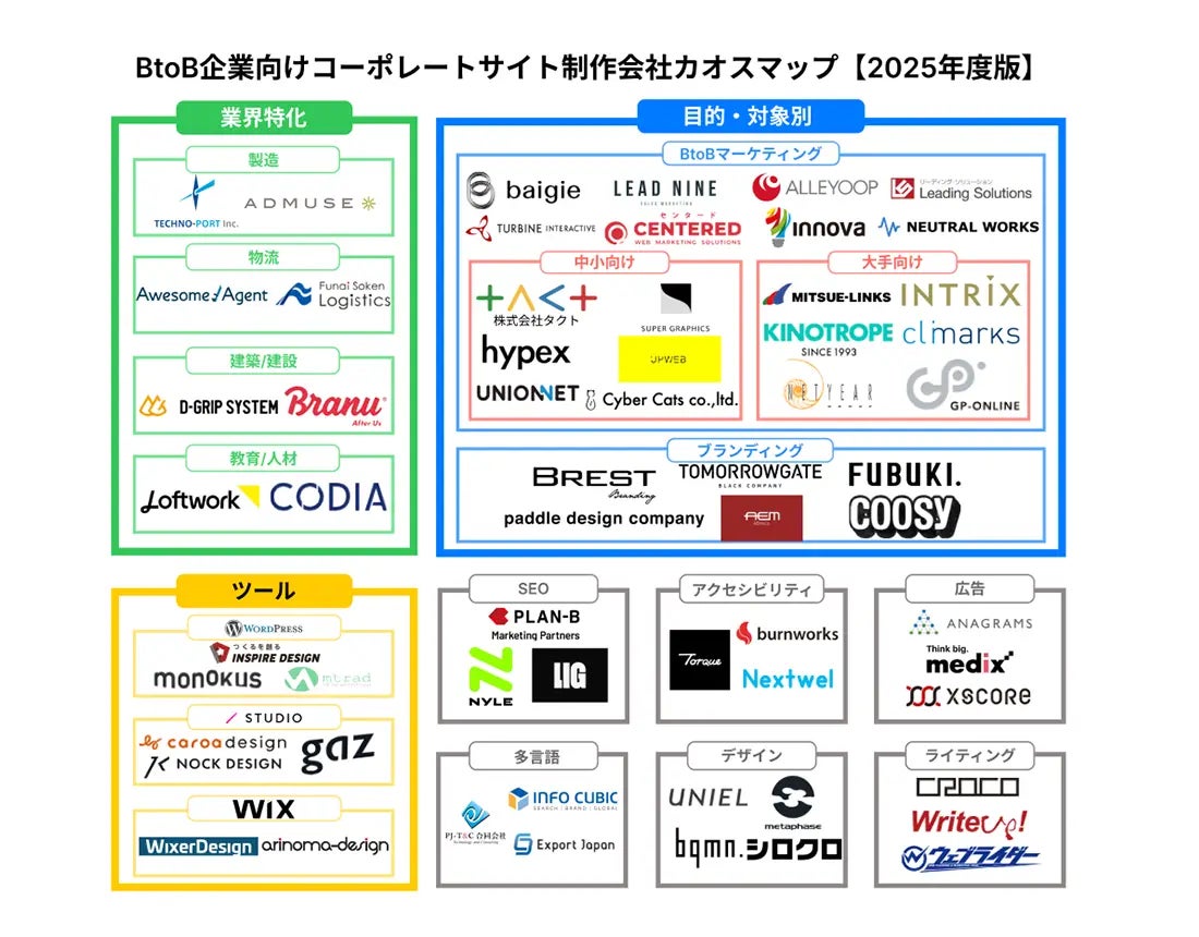 BtoB企業向けコーポレートサイト制作会社カオスマップ【2025年度版】