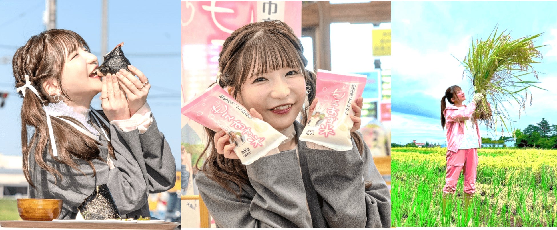 「相馬市の自然や食文化にすっかり魅了され、このプロジェクトに参加できることを心から嬉しく思っています。初めて相馬市を訪れたとき、その美しい風景や温かい人々、そして何より新鮮で美味しい食材に感動しました。昨年からスタートしたこの『もえあず米プロジェクト』も、皆さんのご協力のおかげで今年も無事に『もえあず米』を収穫することができ、感謝の気持ちでいっぱいです。『もえあず米』は、私自身が田植えや収穫にも携わり、相馬市の豊かな土地と恵まれた気候の中で育てられたお米です。ちなみに、もえあず米を美味しく食べるコツは、水分量が多いので水分を少なめにして炊くと、粒感あるもっちり美味しいお米になります。また、今年も道の駅そうまでのコラボメニューとして皆さんに提供できることは、私にとって特別な喜びです。コラボメニューを通じて、相馬市の素晴らしい食材がもっと多くの方に知られ、広がっていくことを願っています。特に、SNSなどで発信してくださる皆さんのおかげで、相馬市の魅力がどんどん拡がっていくのを感じます。ぜひ、実際に相馬市の食材を味わって、その美味しさや素晴らしさを体感していただき、皆さんの言葉で多くの方に伝えていただけたらとても嬉しいです。これからも、相馬市の食の魅力をたくさんの方々に届けられるよう、私自身も全力で取り組んでいきたいと思っています。」ともえのあずきさんはコメントしました。