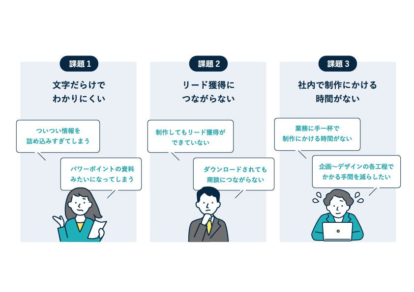 作ったはいいがリード獲得できていない。ダウンロードされても商談につながらない。 -