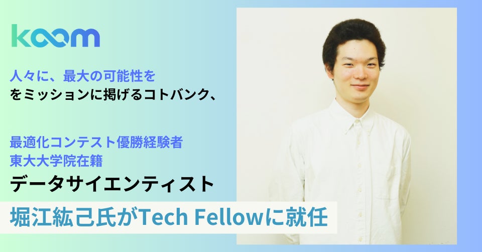「人々に、最大の可能性を」をミッションとし、国際教育・学校向けクラウドサービスを展開するコトバンク株式会社(所在地:東京都渋谷区、代表取締役:小泉純、以下コトバンク)は、2024年5月8日付で東京大学大学院に在籍し、最適化コンテスト優勝を経験した堀江紘己氏がTech Fellowに就任したことをお知らせします。