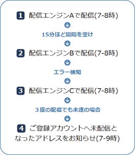 また、期限管理の失敗は単なる予定の見逃しに留まらず、資格の失効による業務停止や、法的な期限超過による重大な損失など企業経営や個人の職業生活に深刻な影響を及ぼす可能性があります。このような背景から、より確実で冗長性の高い期限管理システムへの必要性を感じ、当社は3つのメールアドレスへ2通ずつ配信する多重通知と、3層の配信エンジンを備えたクラウド型アラートサービスの開発に着手。