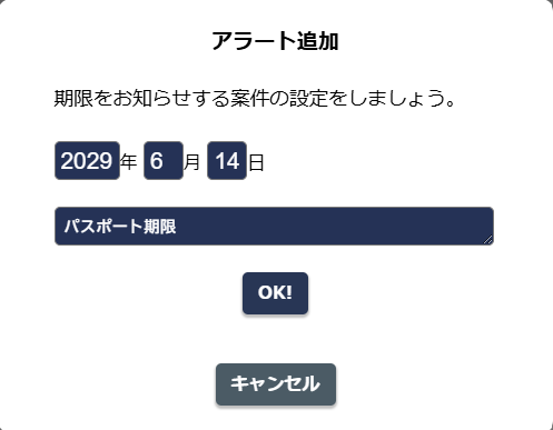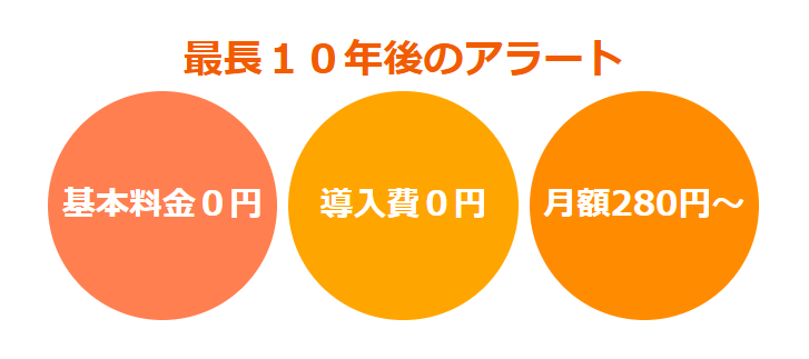 期限を忘れそう。でも大丈夫。5年後でも10年後でも、期限を覚えていて定期的に通知するアラートツール。PCやスマートフォンを買い換えても、転居、移転で更新案内が届かなくなっても安心です。
