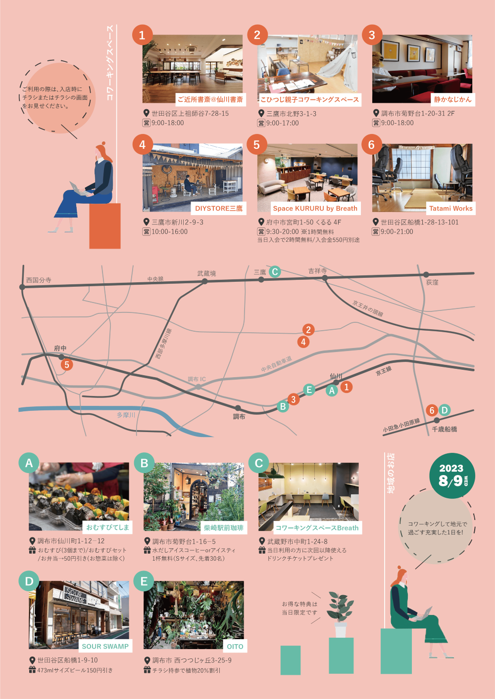 イベント当日は、西東京エリアにある6つのコワーキングスペースを無料開放いたします。