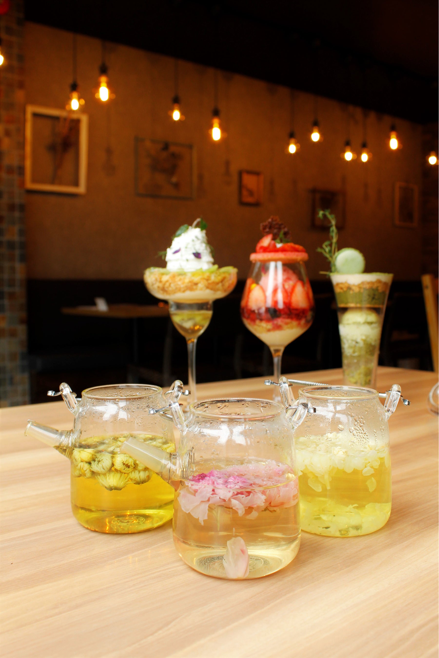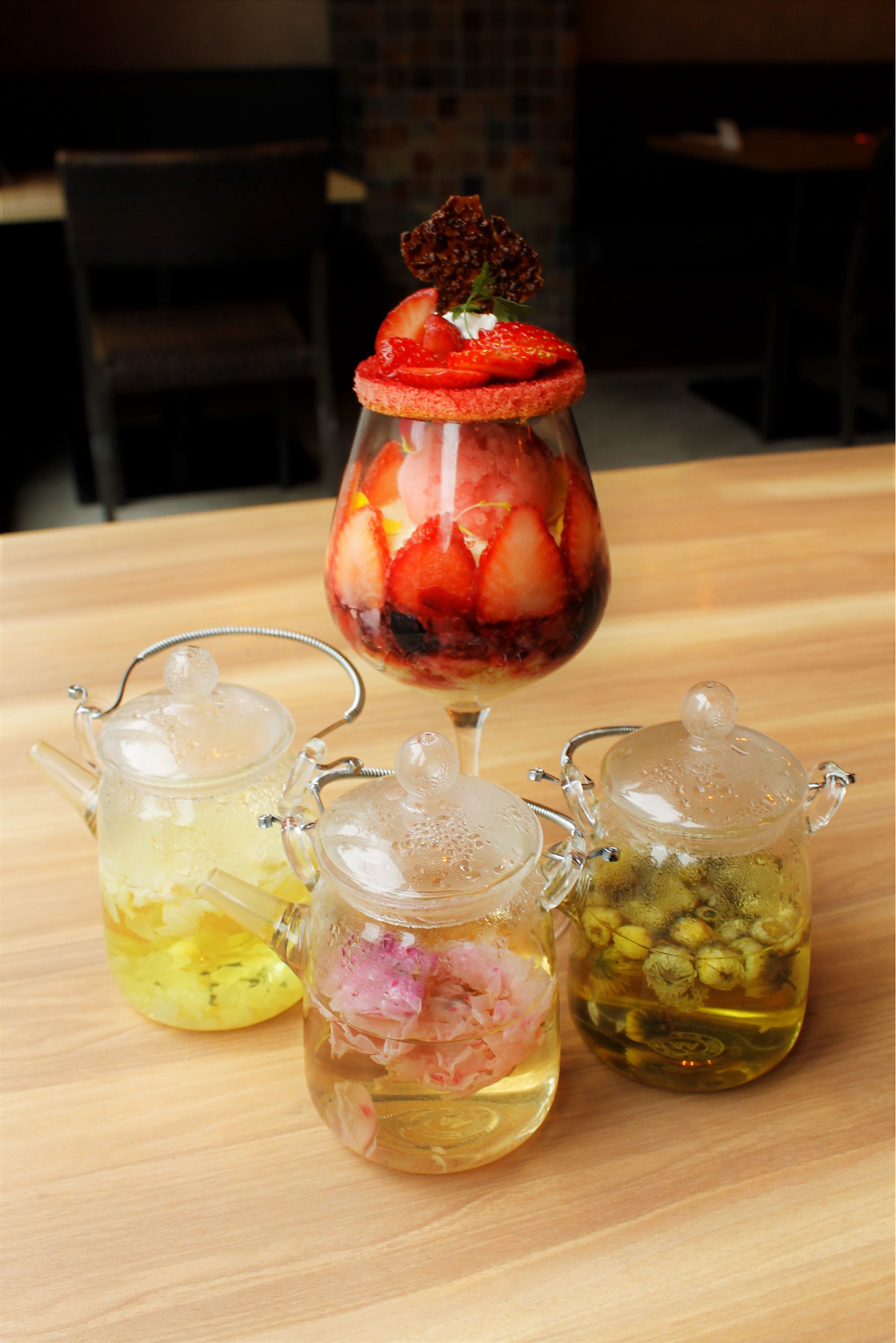 ◆「VIGO」の人気夜パフェ×「fuacha」(ばら花冠茶・ジャスミン花茶・菊花茶)