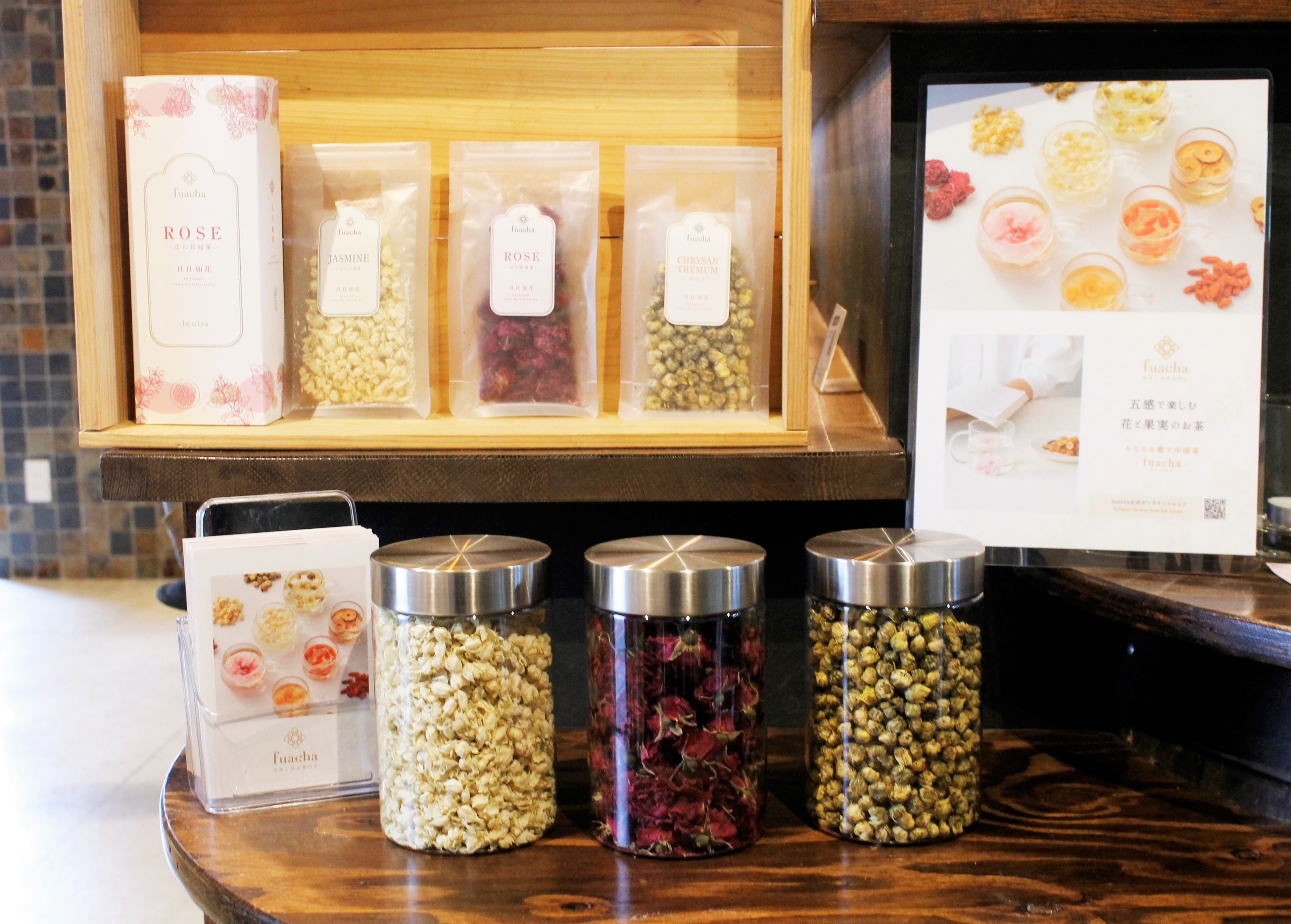花茶「fuacha」は形や色、香りができるだけ変わらないように、独自の製法で低温乾燥したものです。ポットの中の花が開花すると同時に、ふわりと華やかな香りが漂い、まずそこでリッチな気分が急上昇。