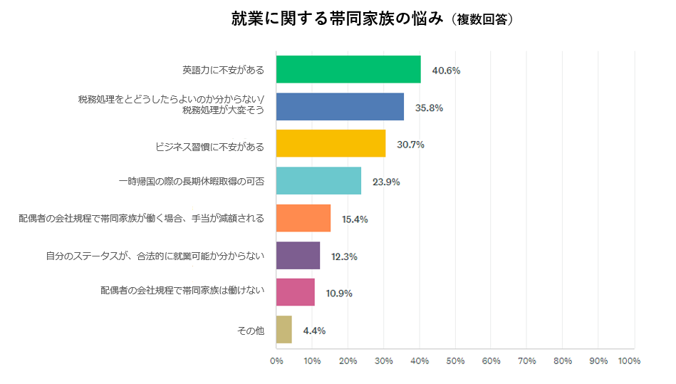 就業に関する悩みは「英語力の不安」と「税務処理の問題」がトップ