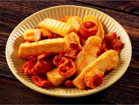 新食感のイカスティックととうがらし天は相性抜群です。辛いキムチ味が、あとを引くためお酒も進む味です。