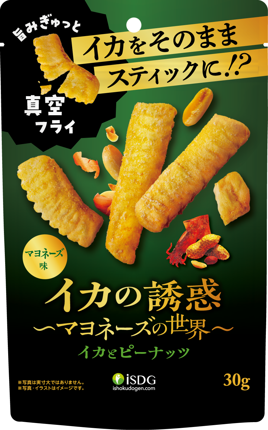 お客様に安心と安全をお届けするため、様々な商品に応じた品質管理を徹底し、お客様の健康に寄り添った商品開発を重ねて参りました。社名にある「医食同源」の名の通り、もっと手軽に摂ることができる健康的な食べ物があればと思い、きのこシリーズの「しいたけスナック」や野菜シリーズの「オクラ&長芋スナック」など真空フライ製法のお菓子を2023年3月から販売をしております。この度、新しくイカシリーズを立ち上げ「イカの誘惑 イカととうがらし天 キムチ味」と「イカの誘惑 イカとピーナッツ マヨネーズ味」を開発する運びとなりました。