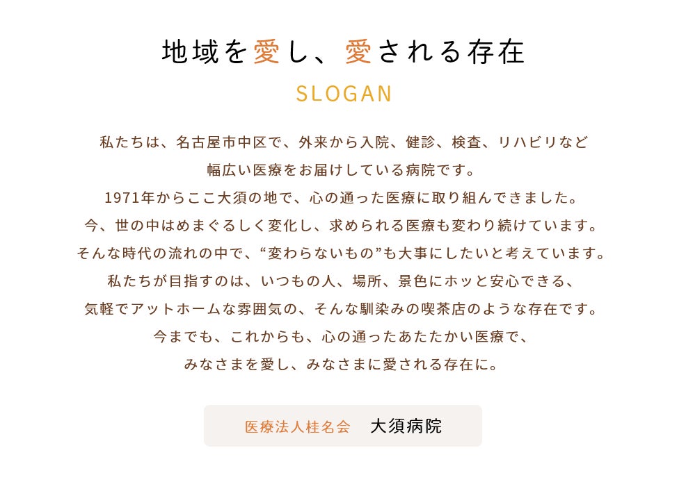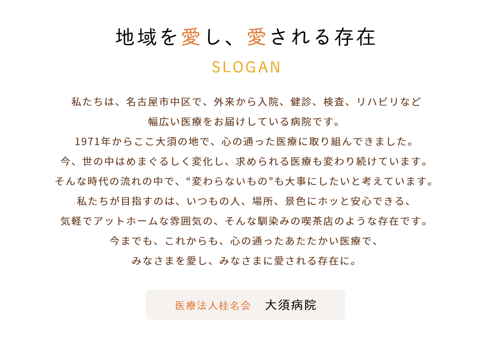 - 大須病院のスローガン「地域を愛し、愛される存在」