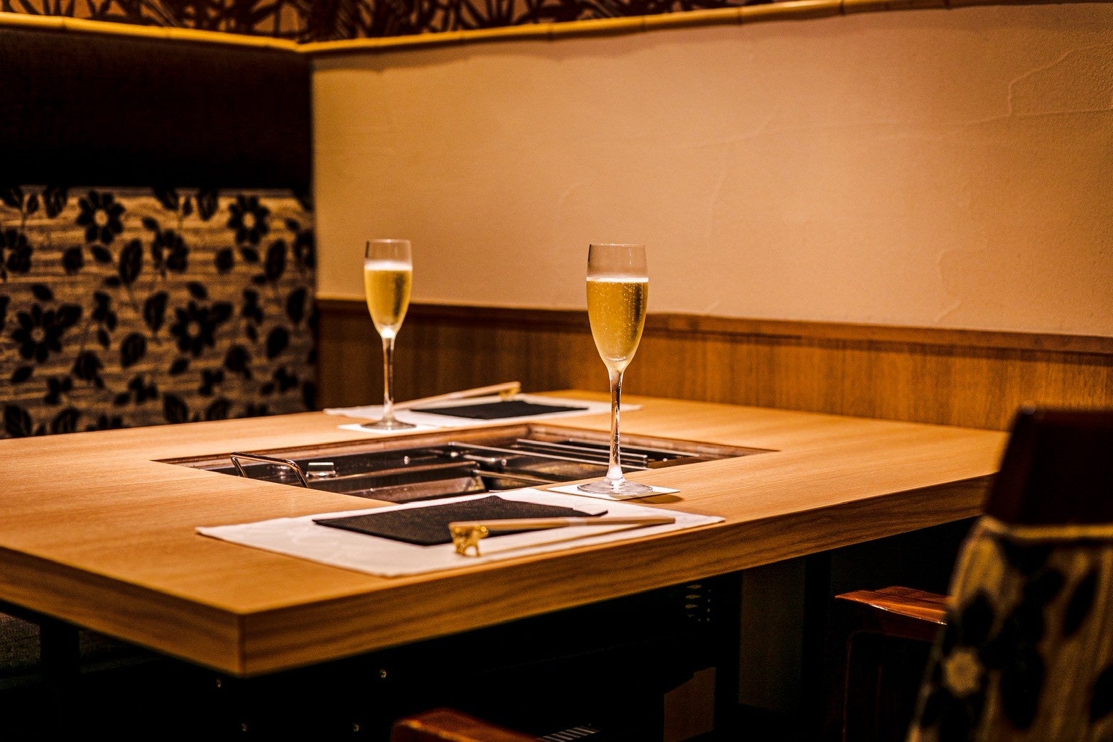 木を基調とした温かみのある店内には、落ち着いた照明とソファーの質感が調和し、上質な大人の隠れ家のような空間が広がります。 全席を半個室のボックスシートとし、プライベート感を大切にした設計に。 ご接待や記念日など、より特別なひとときをお求めのお客様には、静かな完全個室もご利用いただけます。 上質なお肉を“語らう時間”として楽しめる、贅沢な空間をご提供いたします。 |