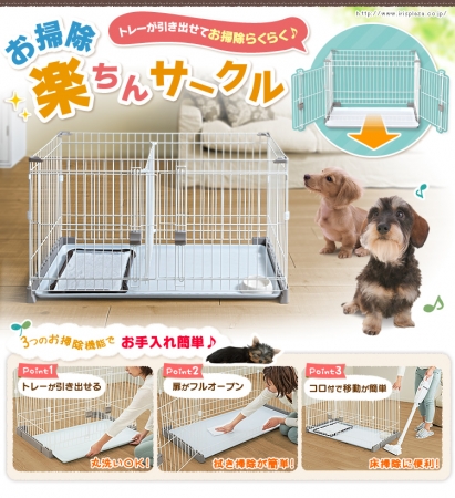 前面のドアを全開にできるので、サークルの奥まで掃除がしやすいです。