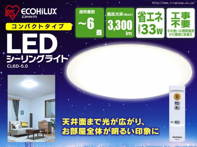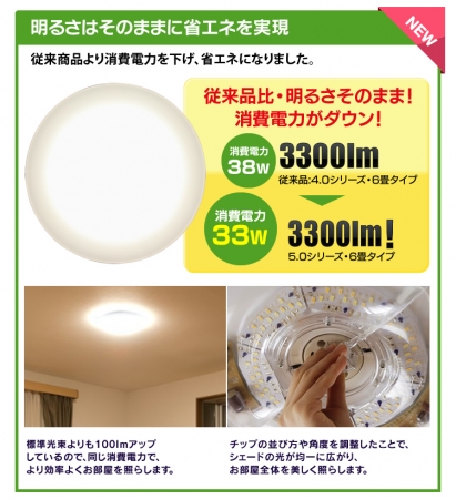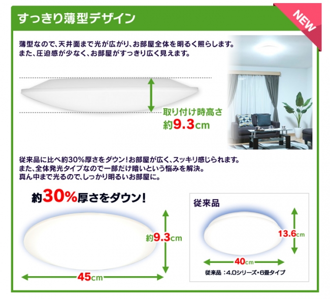 従来品と明るさはそのままに省エネを可能にした薄型デザインのLEDシーリングライトです。