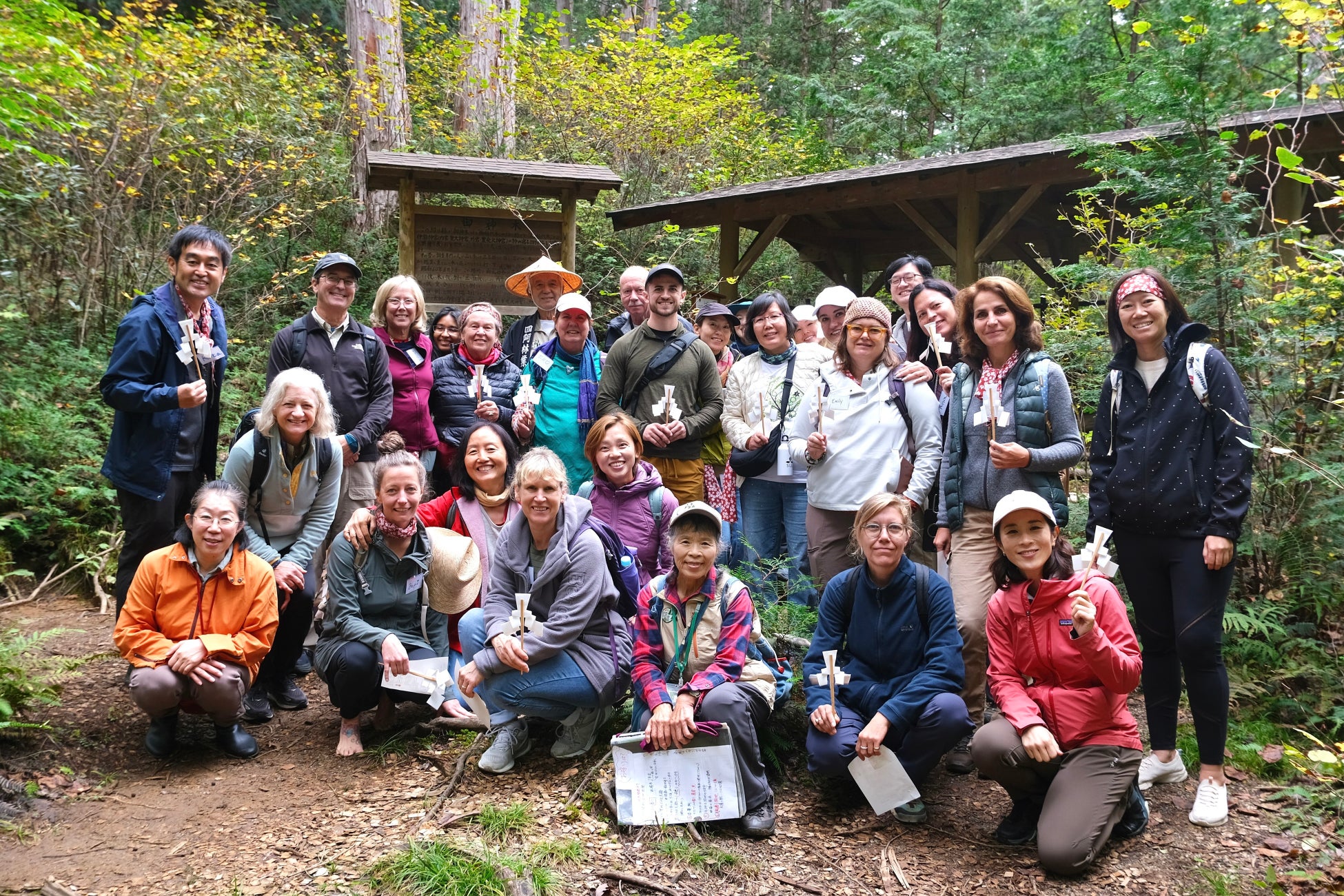 参加者は、海外から19名(アメリカ・カナダ・スロバキア・ニュージーランド・シンガポール)、後半から日本人のShinrin-yoku facilitator®︎が8名(東京・神奈川・静岡・熊本)参加しました。ツアー中、2つの地域で3つの森を訪問しプログラムを行いました。