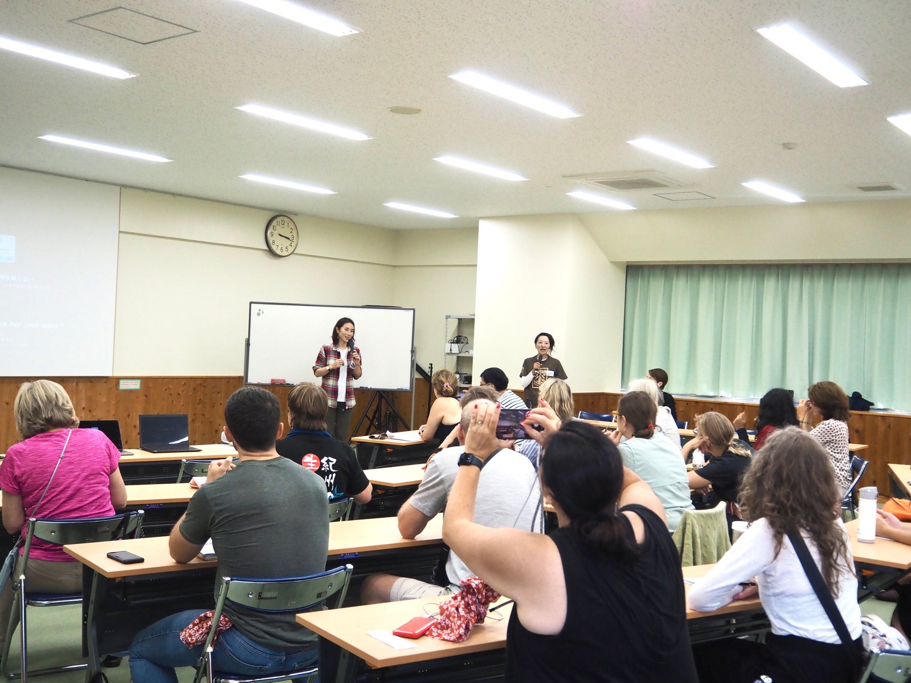 上松町観光協会より木曽の文化について紹介し、その後、森と未来代表の小野なぎさより、日本の森林浴の歴史や森林浴の効果、国内での取り組み状況をはじめ、八百万の神等、日本人の信仰について講義を行い参加者とディスカッションをしました。