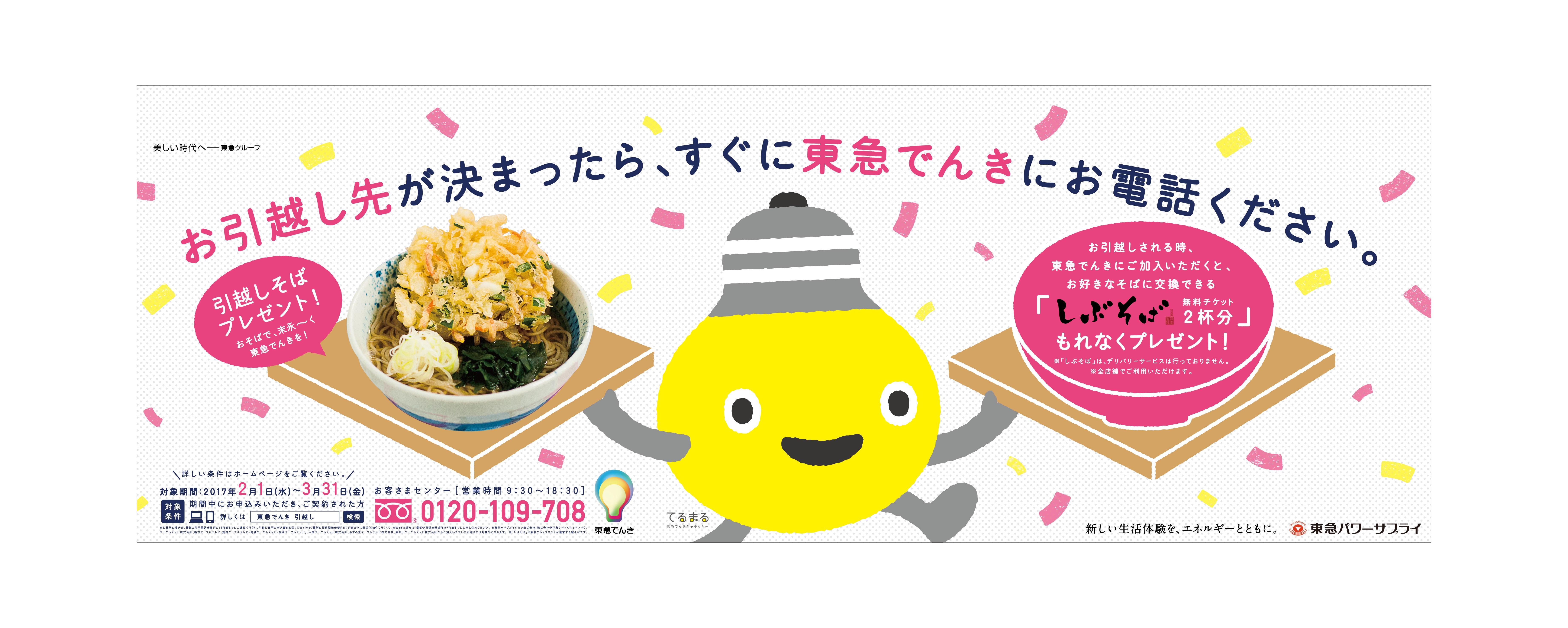 「引越しそば」は、縁起が良いとされている蕎麦に「おそばに末永く」「細く長くお付き合いを」という洒落を込め、江戸時代以降広まった風習です。東急パワーサプライは、引越し需要が高まるこの時期に、「引越しそば」を通じて、生活者のみなさまに、お引越しシーンで東急でんきへの切り替えと、お引越し先の電気の早期お申込みについて、分りやすく伝えることを目的に本キャンペーンを企画いたしました。