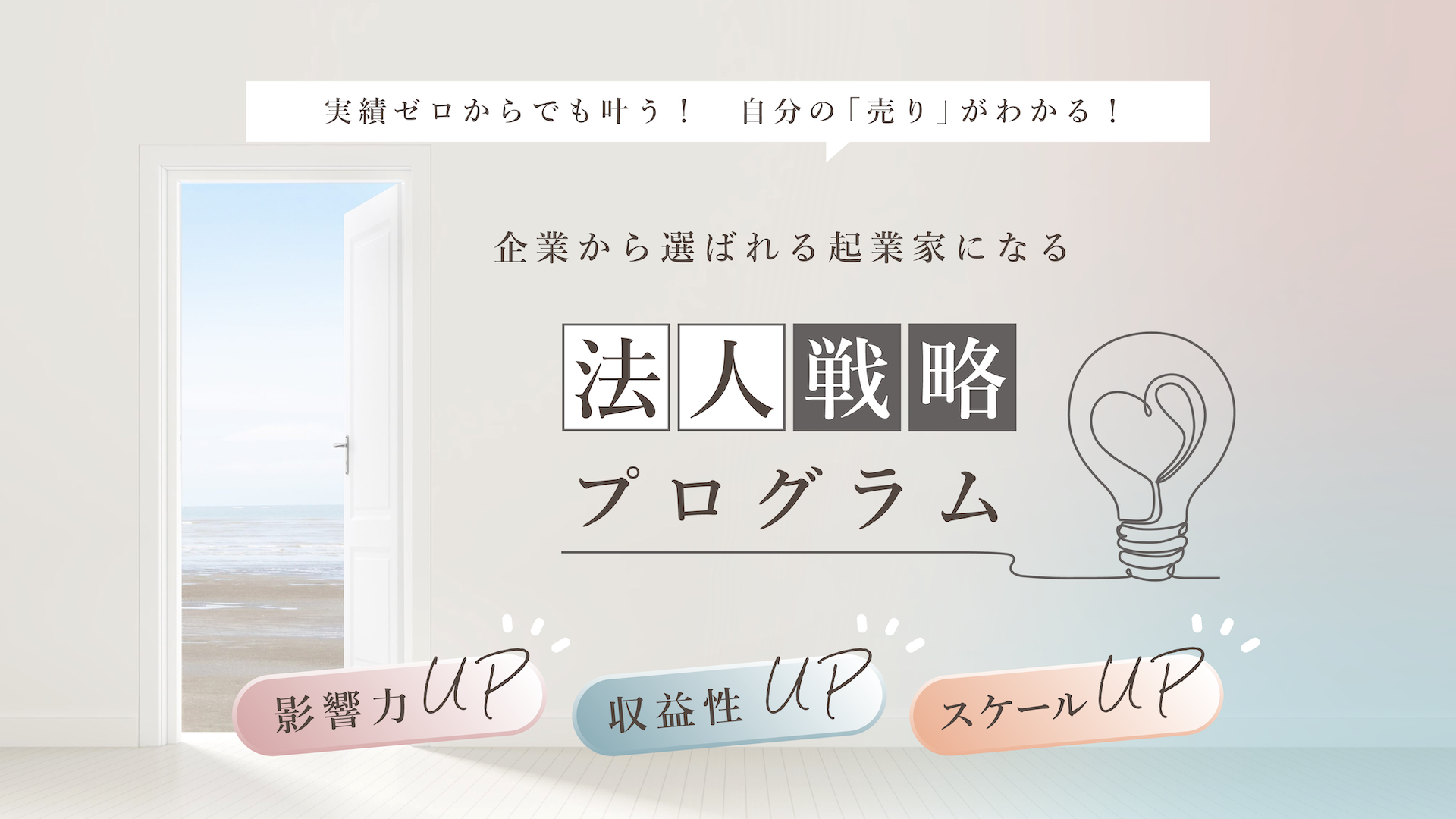 - 企業から選ばれる起業家になる「法人戦略プログラム」