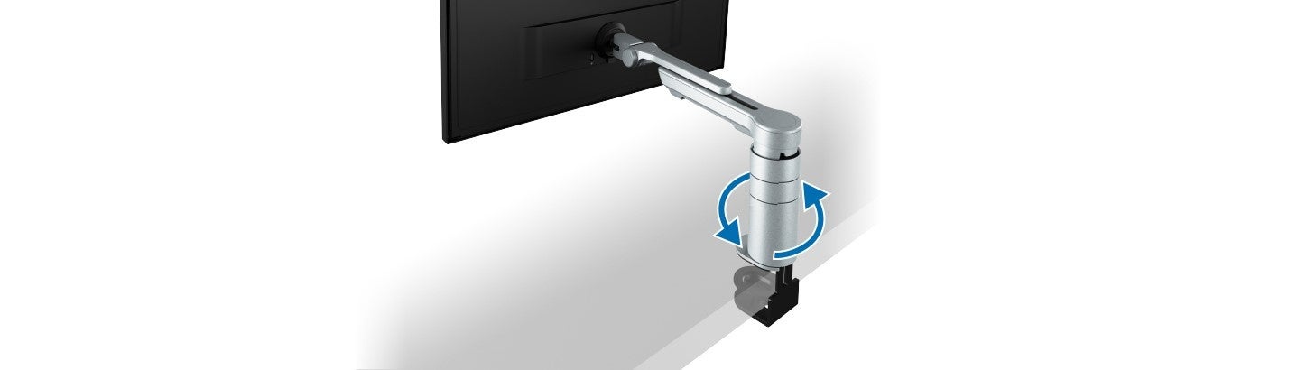 ■支柱を回すことで、デスクへの取付け・取外しをスムーズに行えるアーム
