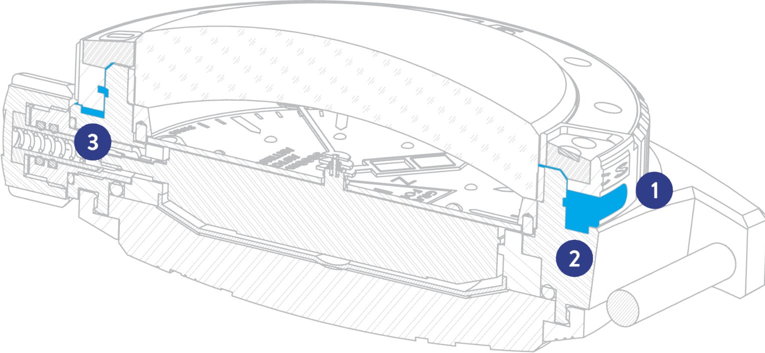 ECSは、国立海洋研究所の機雷除去ダイバー・グループが数多くの潜水中に遭遇した、ベゼルとケースの隙間に塩が結晶化し回転が妨げられるという問題に対する技術的な解決策です。グラン・フォン300復刻版のために、ZRCは機能的な解決策を開発し、特許を取得しました。(No. 1462496)。