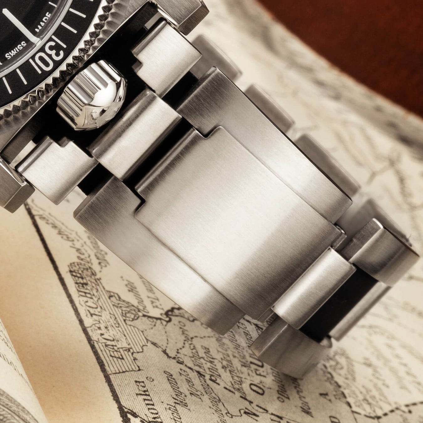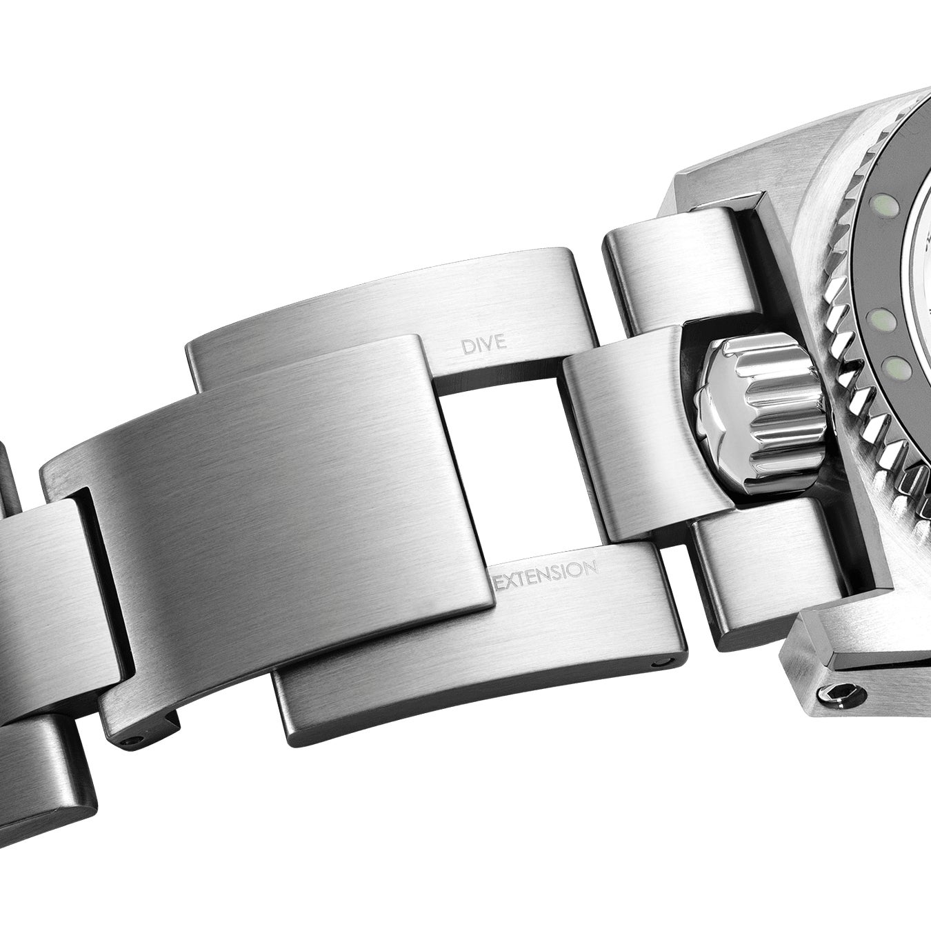 格納式エンドピースを使用したこの独自のブレスレット・システムにより、100%の安全性が保証されます。このシステムにより、リューズを元の位置にねじ込まずに時計を水中に入れることが不可能になりました。リューズがねじ込まれていないと、ブレスレットの位置を正しく調整できません。この効果的な方法により、技術的な問題を引き起こす可能性のある見落としを防ぎます。