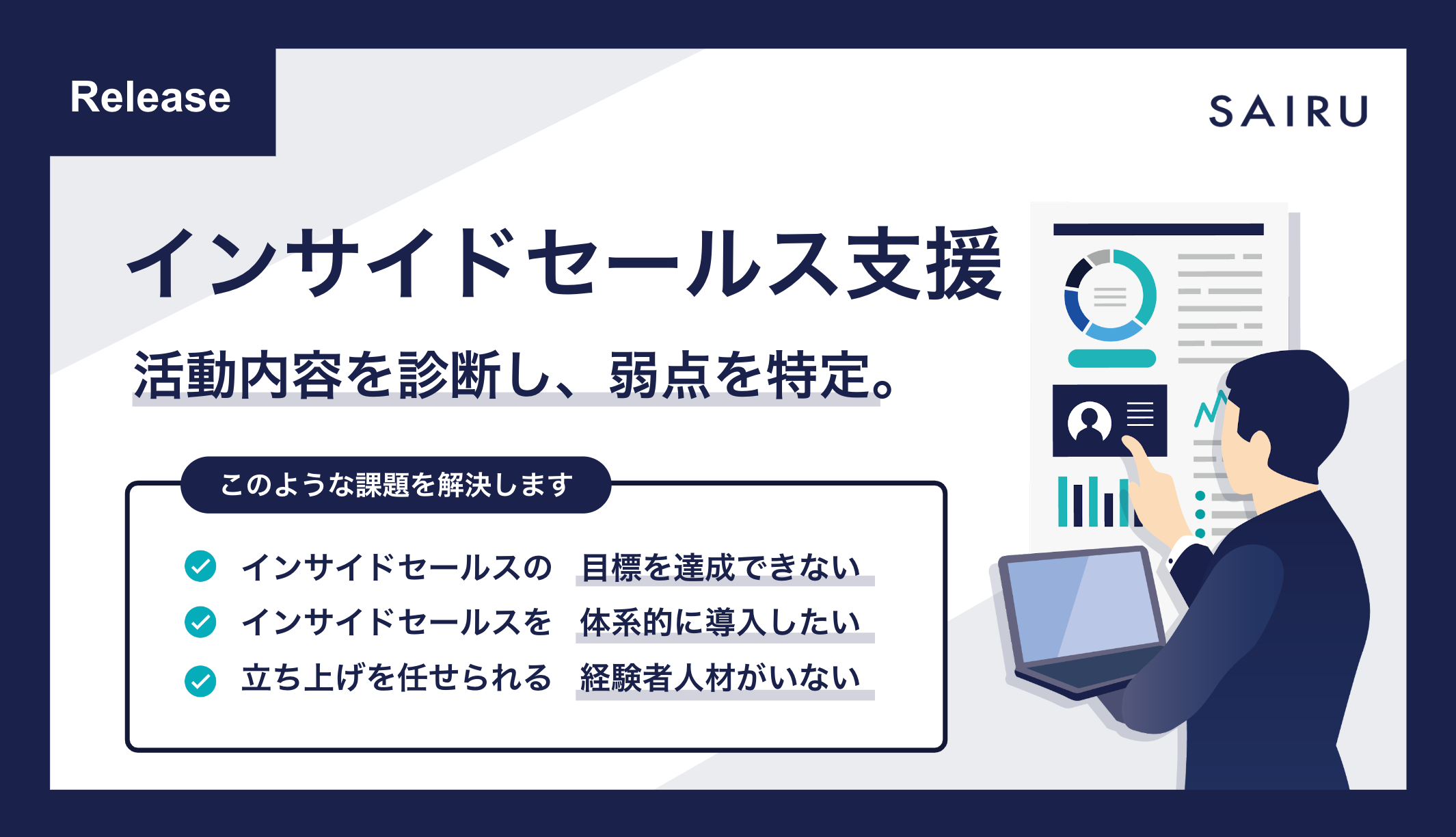 株式会社才流(本社:東京都千代田区、代表取締役社長:栗原 康太、以下 才流 )は、2023年1月18日(水)よりインサイドセールスの立ち上げ・強化支援を行うコンサルティングサービス(https://sairu.co.jp/service/inside-sales/)を提供開始しました。