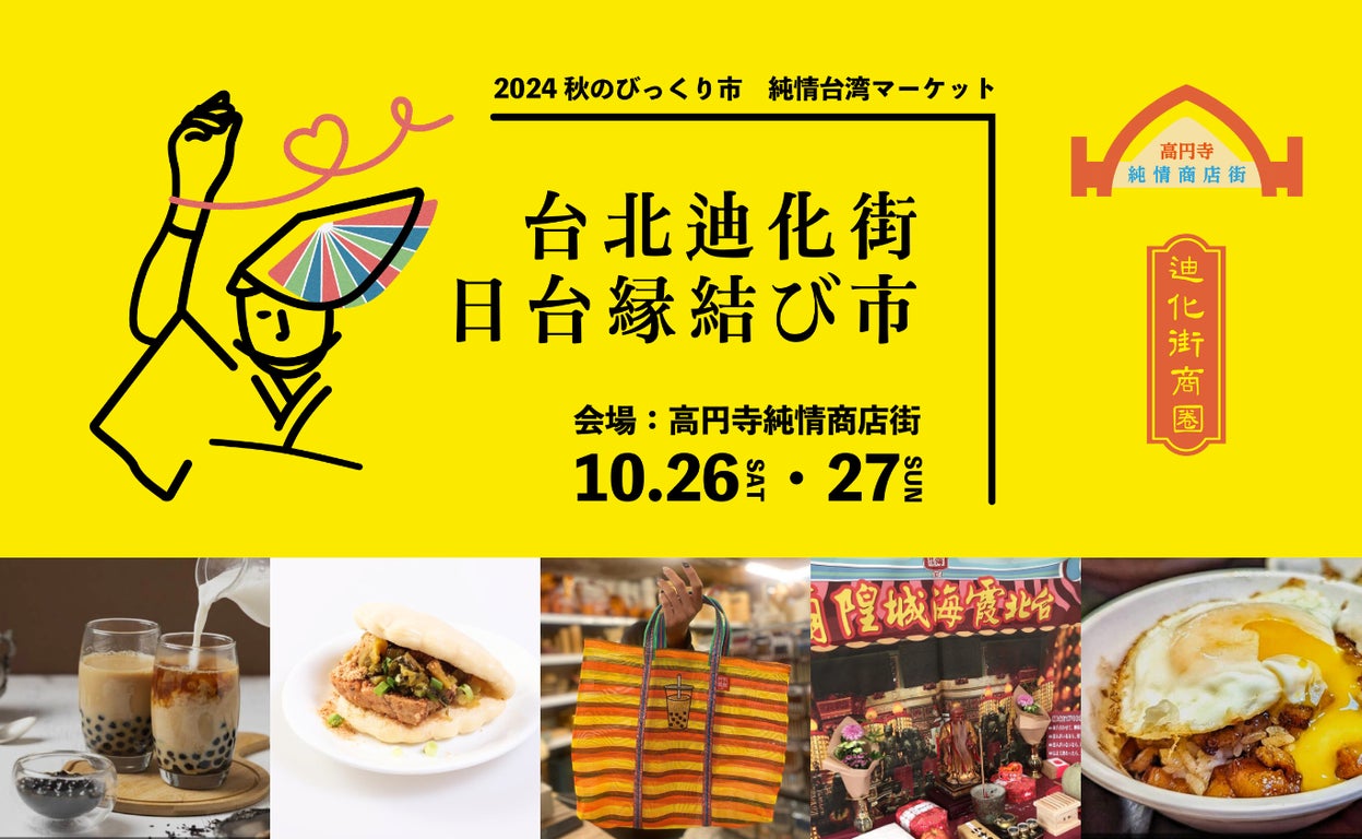高円寺フェスに『台北迪化街』から多数出店で、日台の商店街の交流を活性化10月26日(土)・27日(日)10~19時、杉並区高円寺純情商店街で『台北迪化街 日台縁結び市』を開催