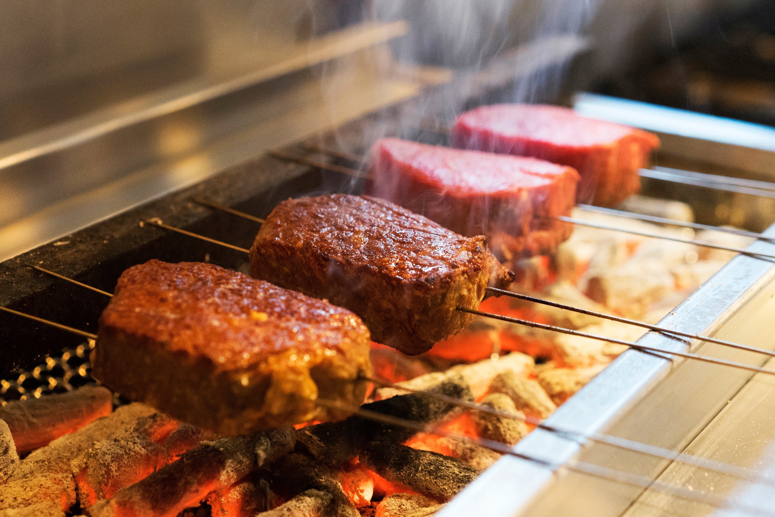 ステーキは⾼温の備⻑炭で外側を⾹ばしく、内側はしっとりと焼き上げ仕上げた⼀品。