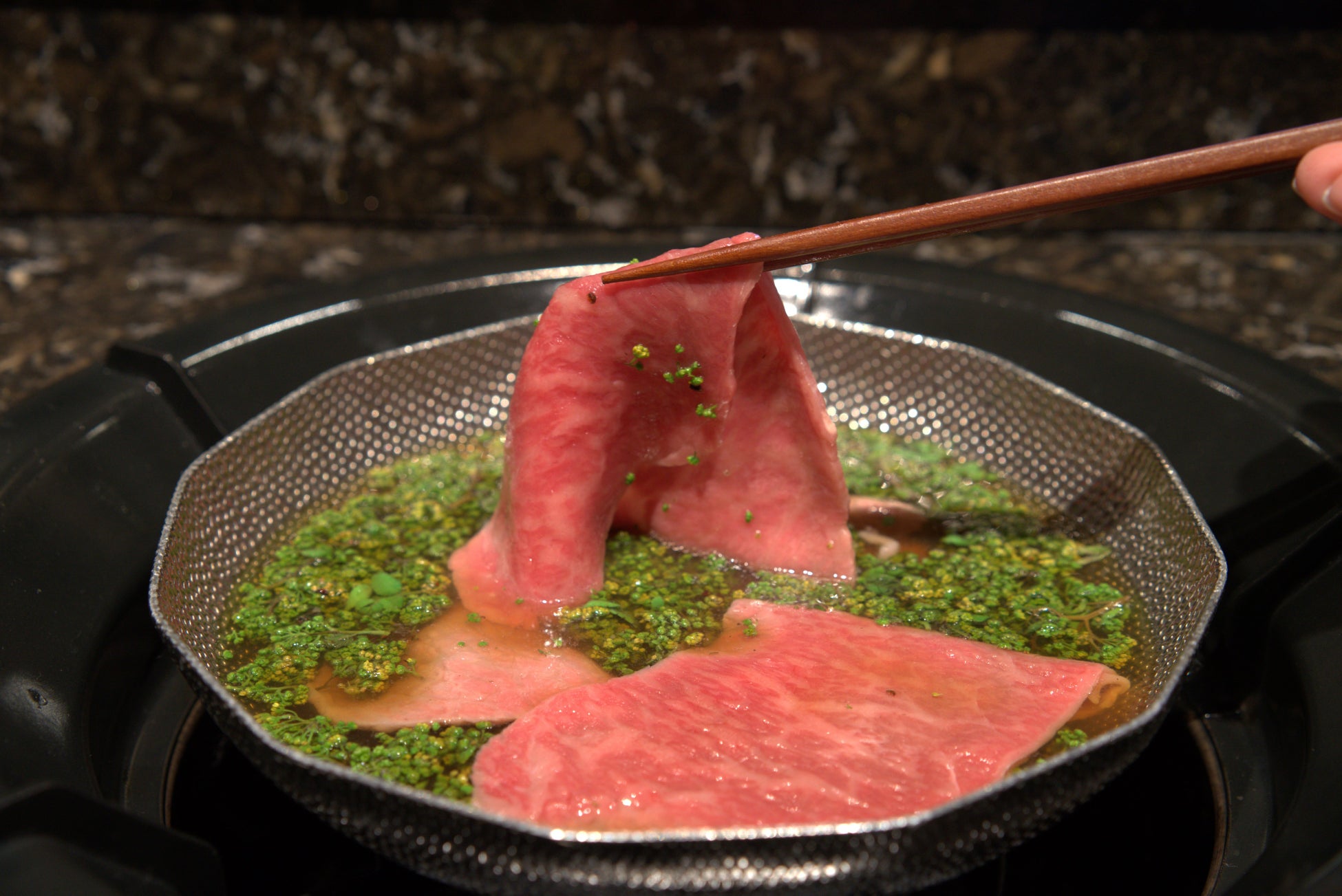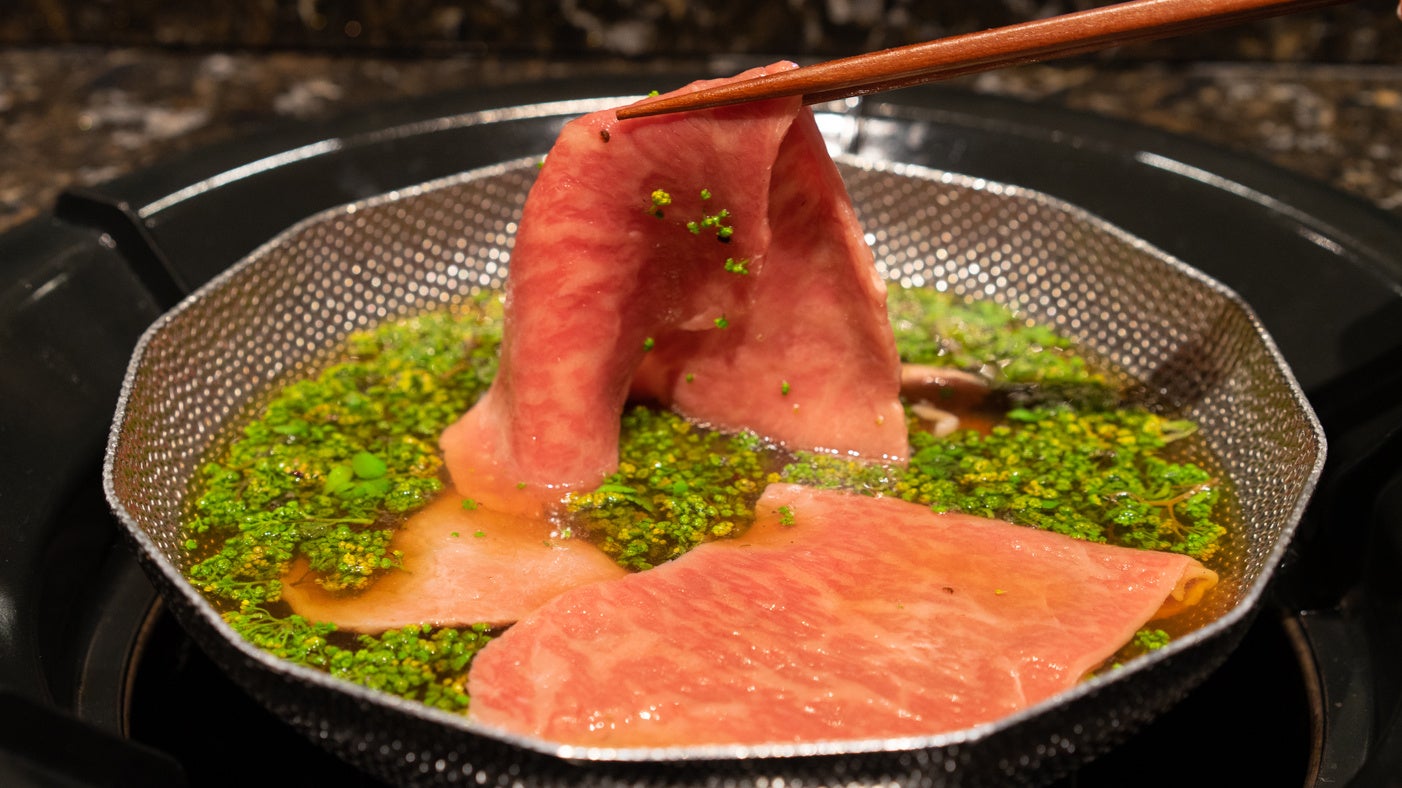 ■花⼭椒と佐賀⽜サーロインのしゃぶしゃぶ
